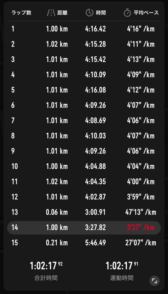 最後の1,000m快調走は、最後息が上がるくらいペースアップしてしまい、全然快調じゃなかったですw