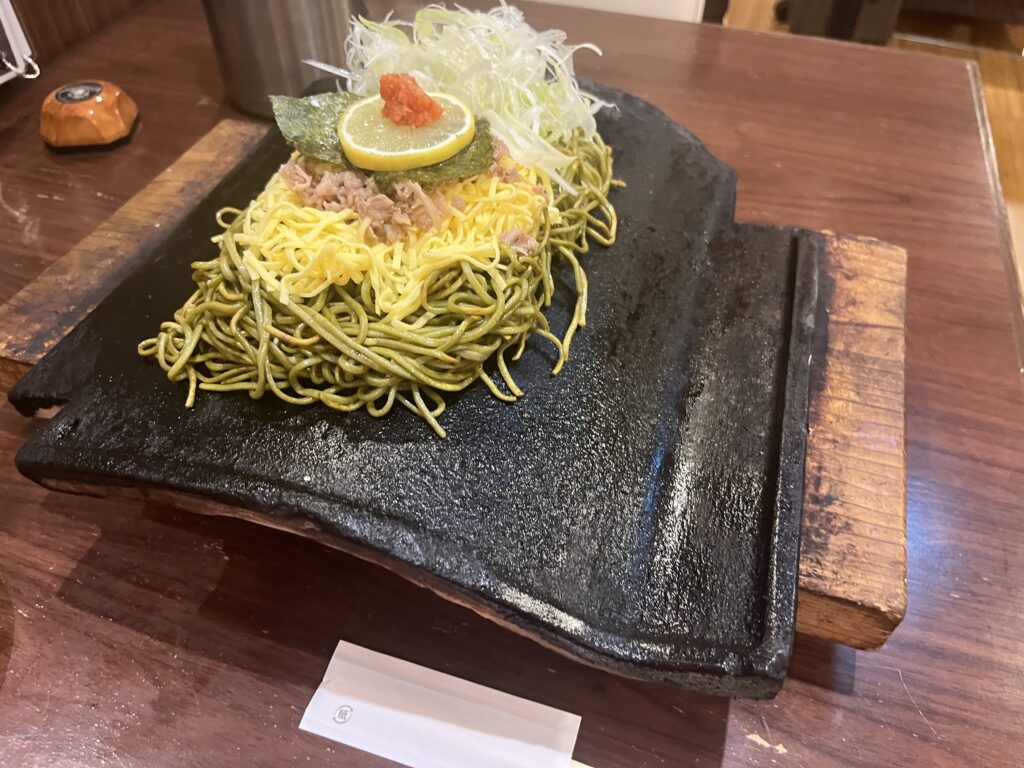 熱々の瓦に直接触れたそばは、かた焼きそばみたいな食感になっていて、とても美味しかったです。