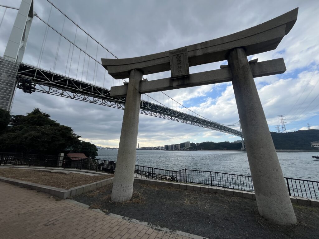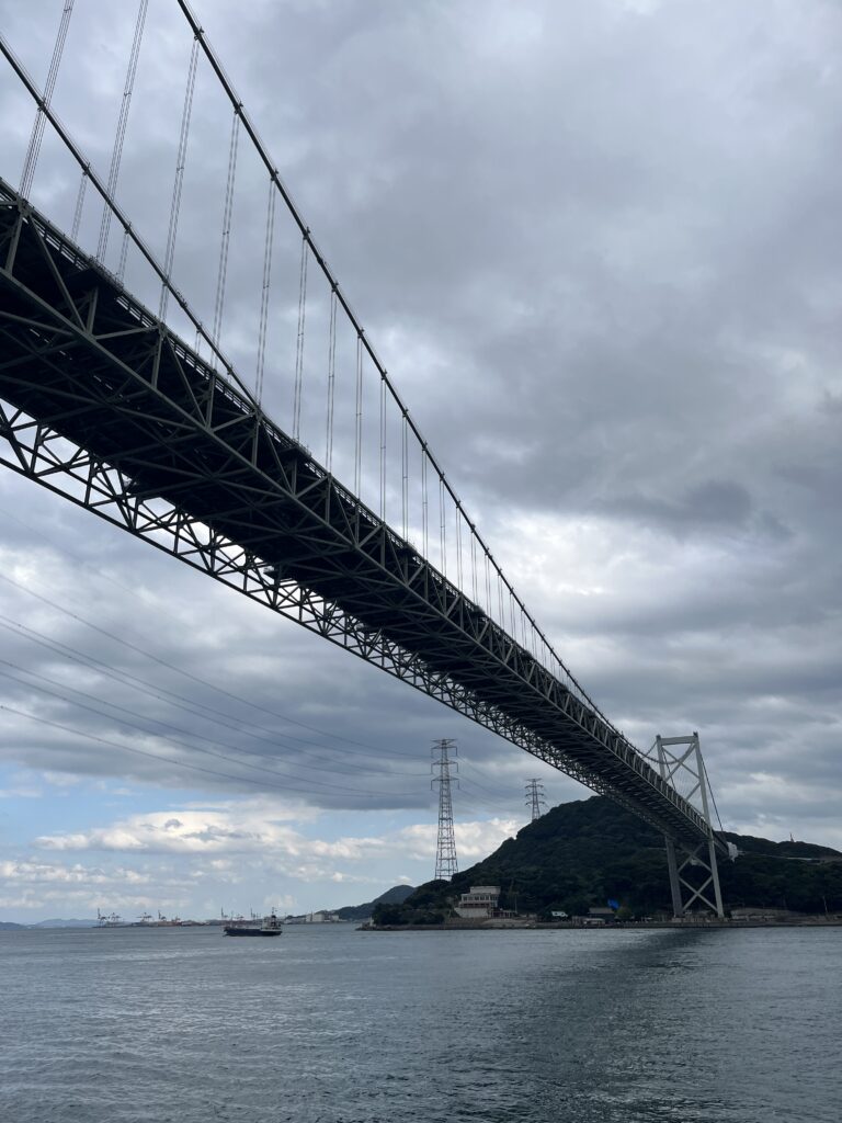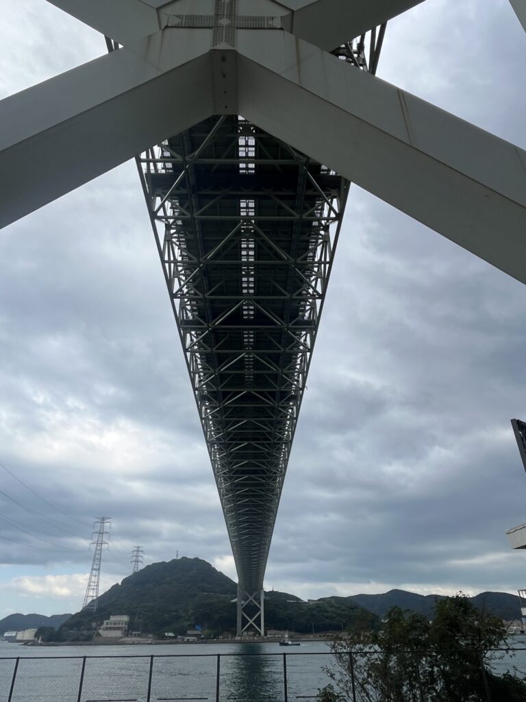 3キロ地点には、関門橋があり、高い場所を車が通ってました。