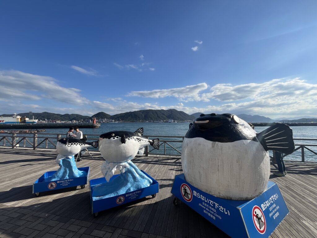 帰りは、海沿いを走ってきたら、ふぐがいました。