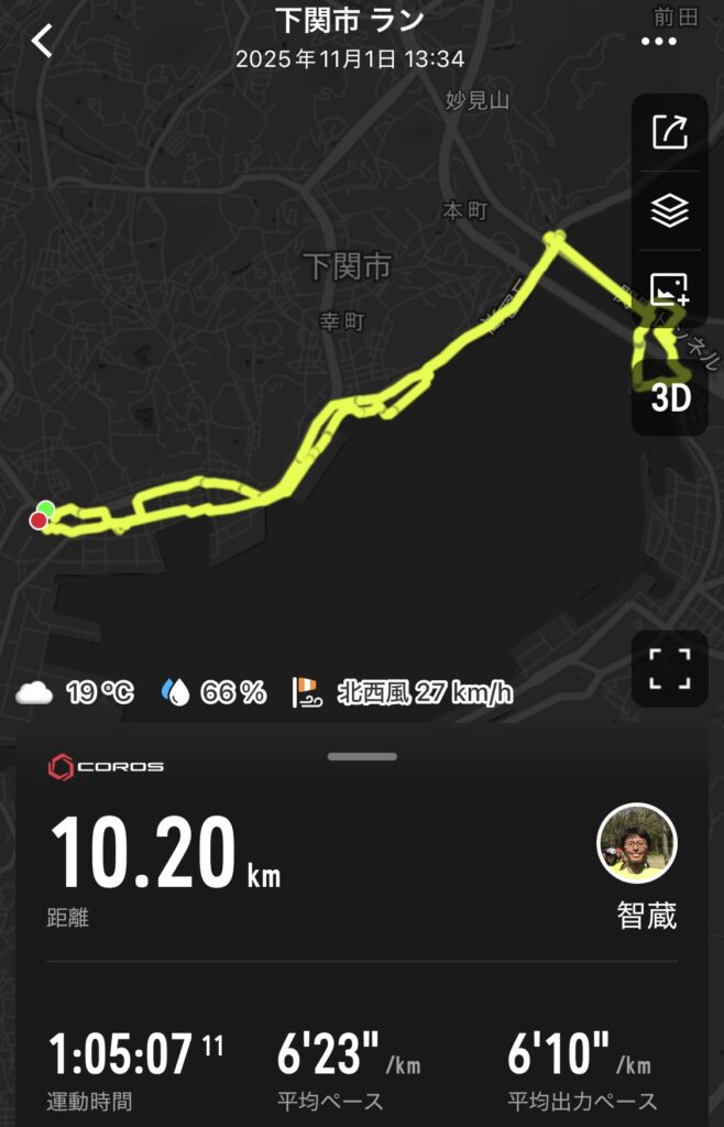 コースの2キロ地点くらいでは、海がすぐそこにあり、さらにすぐそこに対岸の門司港が見えました。