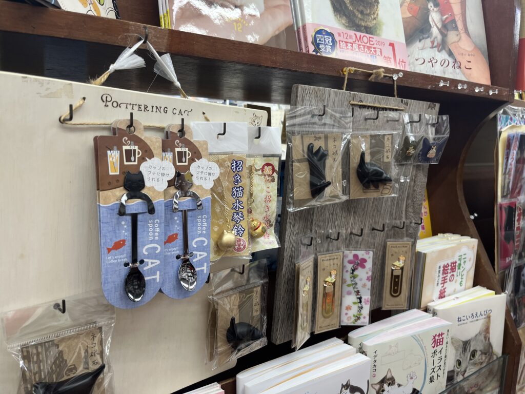 猫に関するグッズも所狭しと置いてあります。