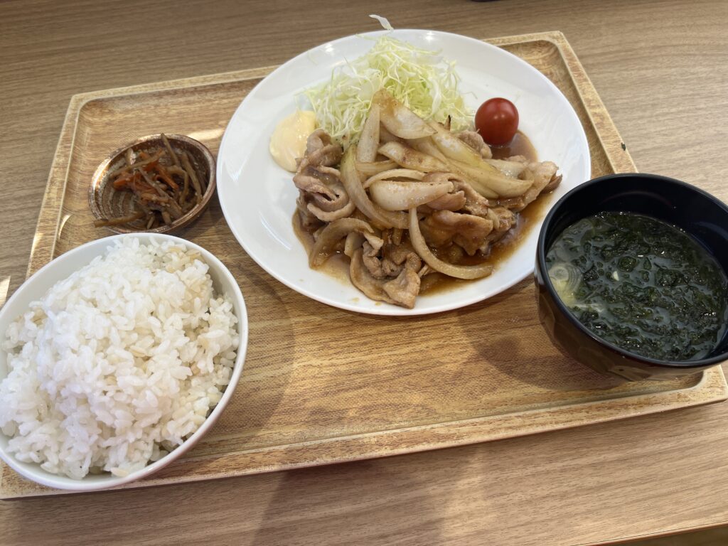 残念ながら、ご当地グルメがなかったので、生姜焼き定食のご飯大盛りでカーボローディングしておきました。