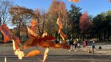 金沢21世紀美術館のオブジェとチームメンバーを撮る人を撮る写真。