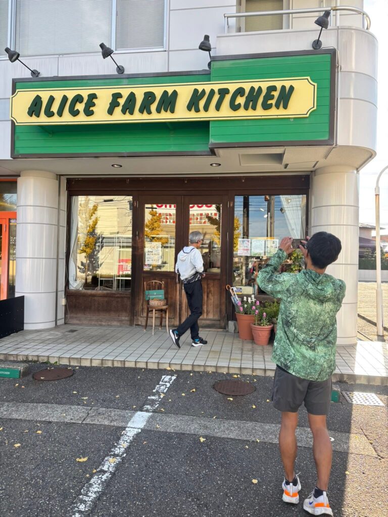 パン屋を覗こうとするメンバーの写真です。
