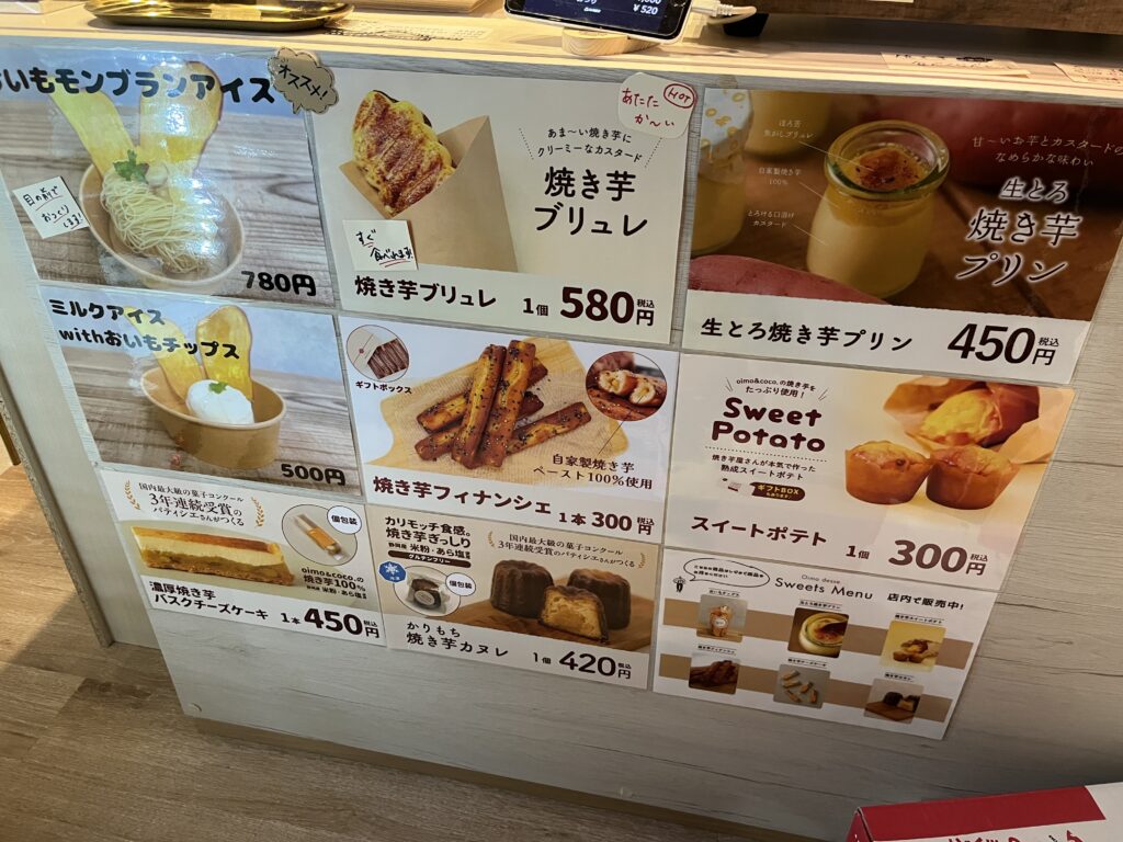 焼き芋のスイーツの種類も豊富で、どれにしようか迷います。
