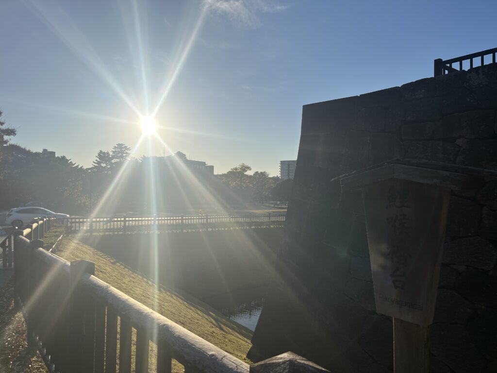 シャボン玉が終わったら、夕日がいい感じに輝いてました。