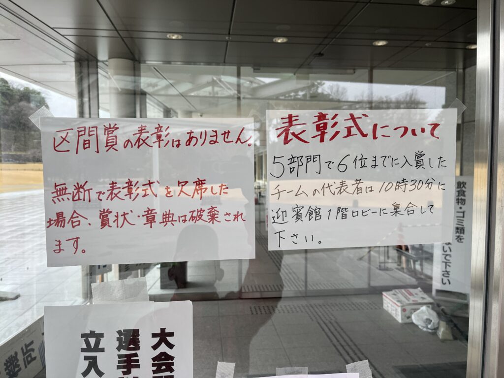 いくつか張り紙がありましたが、表彰式の無断欠席について厳しく言及されてました。