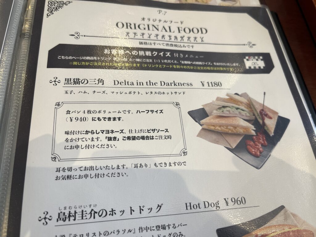 時間がお昼時だったので、謎解きのお供に、ガッツリとホットサンドを頼みました。