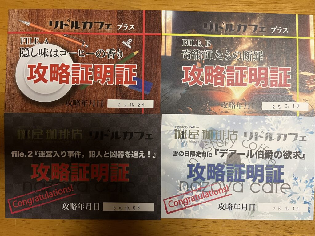 なお、これまでに解いたリドルカフェは4つとなりました。