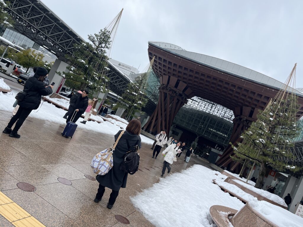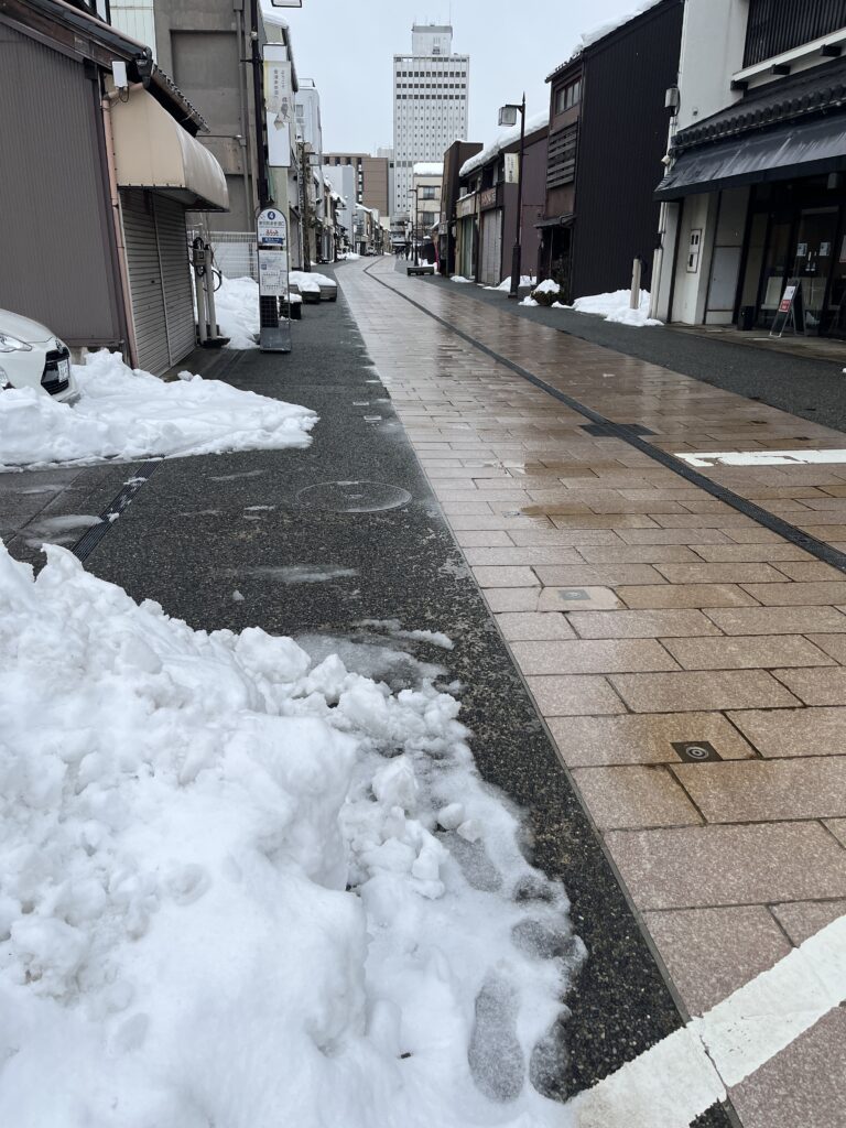 前回の大雪から1週間くらいは経ちますが、金沢駅の前も、まだ少し雪が残っています。