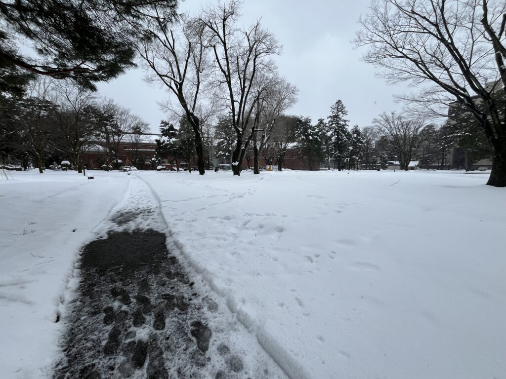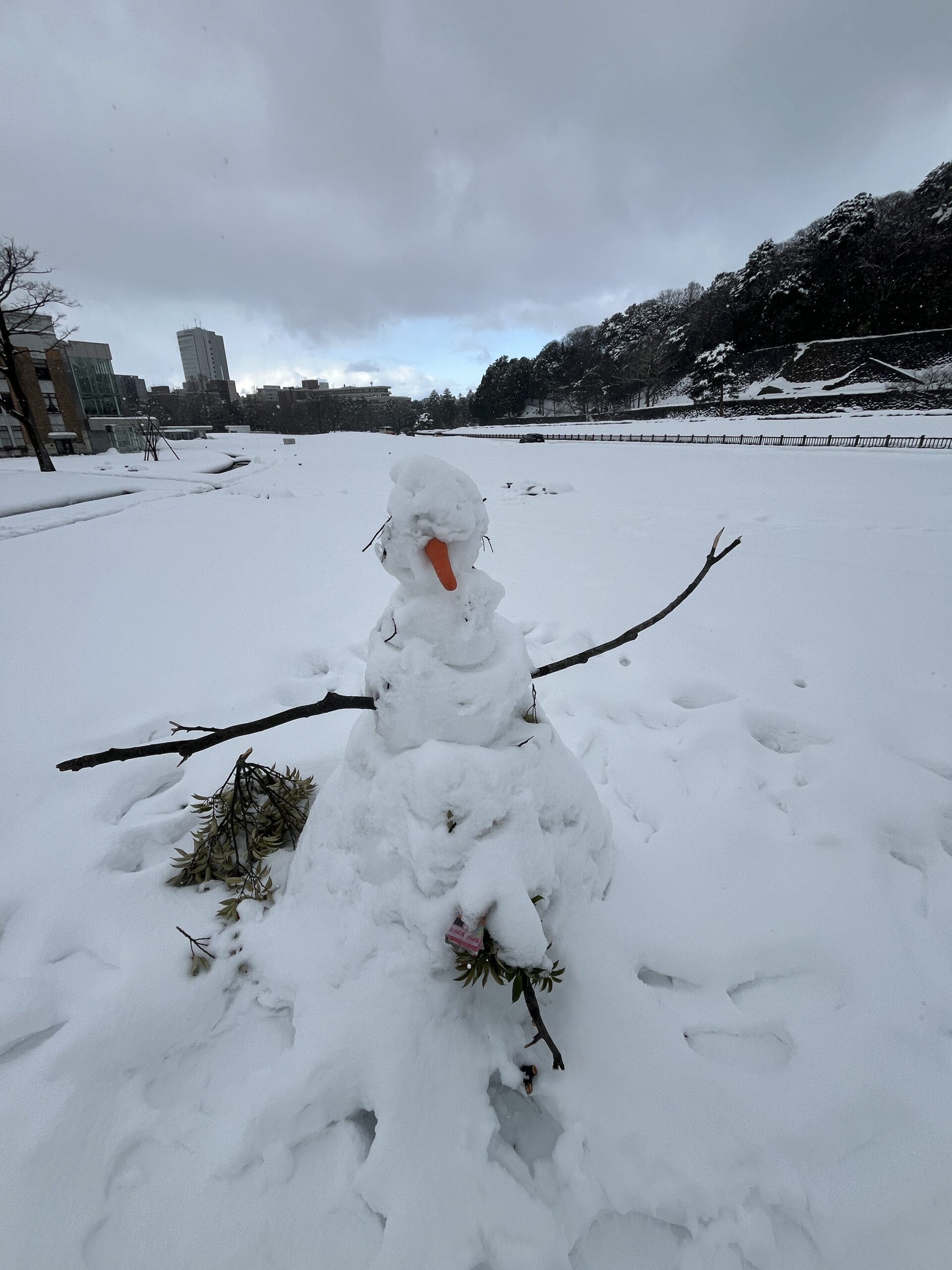 しいのき迎賓館の広場には、すでに朽ち果てようとしている雪だるまがおり、ホラー映像みたいになってしまいましたw