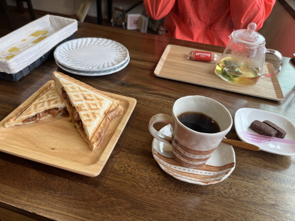 しっかりお腹が空いていたので、焼き鳥ホットサンドとコーヒーをいただきました。