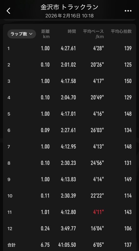 最近は、大会直後のトラック練習で身体のダメージに繋がっていた事が多かったので、今回も少しビビりながら実施しましたが、特に問題なかったようで安心しました。