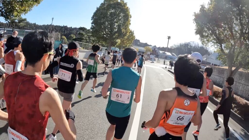 スタート直後、GPS時計のスタートに失敗し、やり直してたら、一気に後ろから抜かされていきましたw