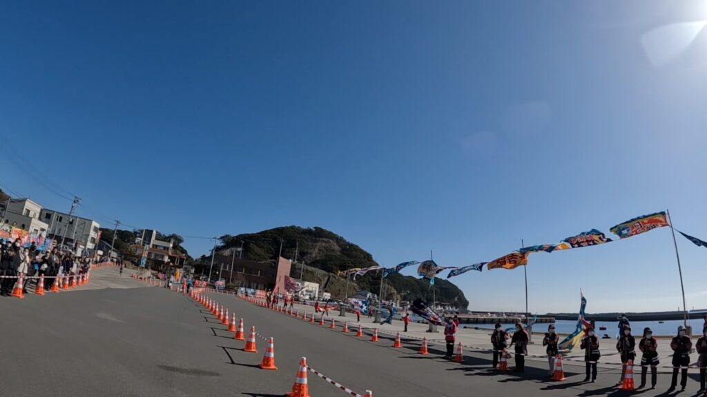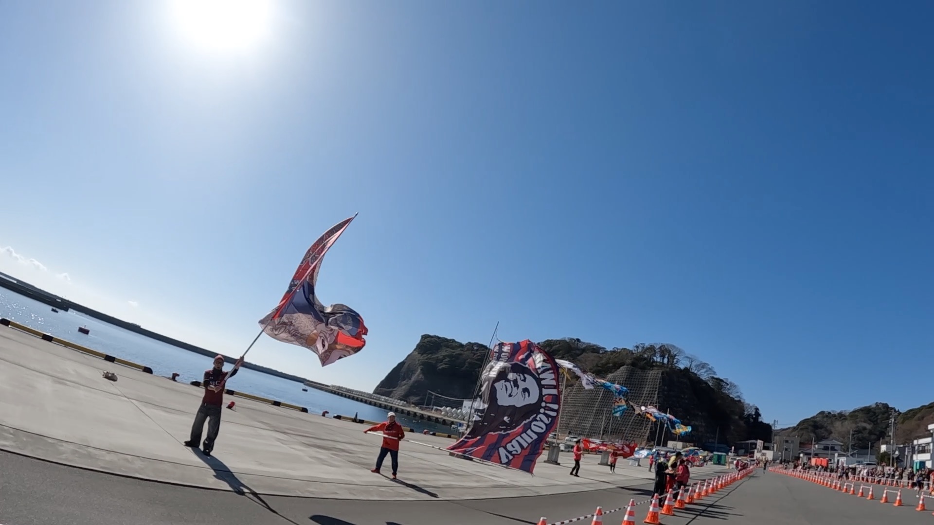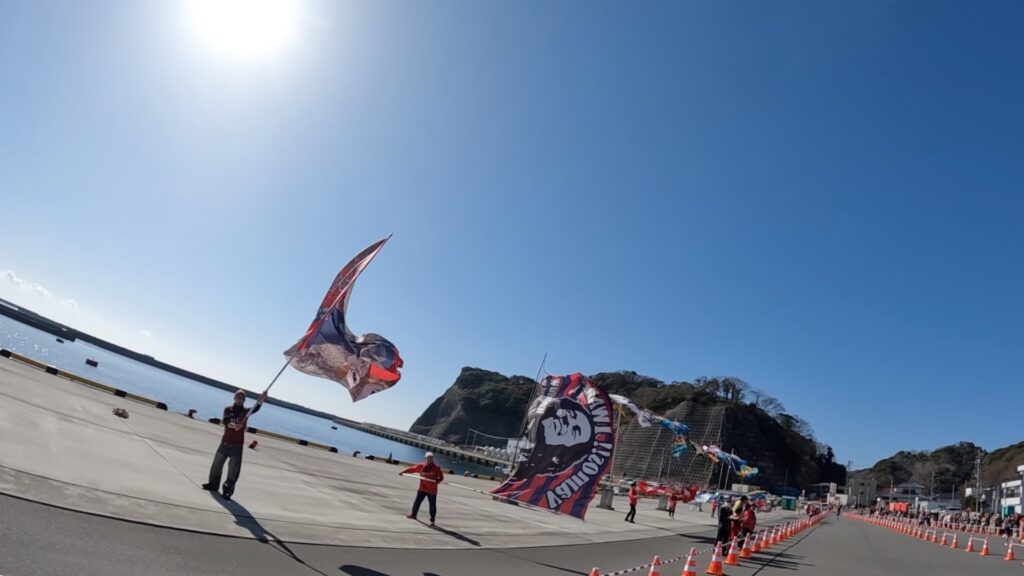 江名港では、大小沢山の応援旗による大応援団がいて、パワーをいただきました。
