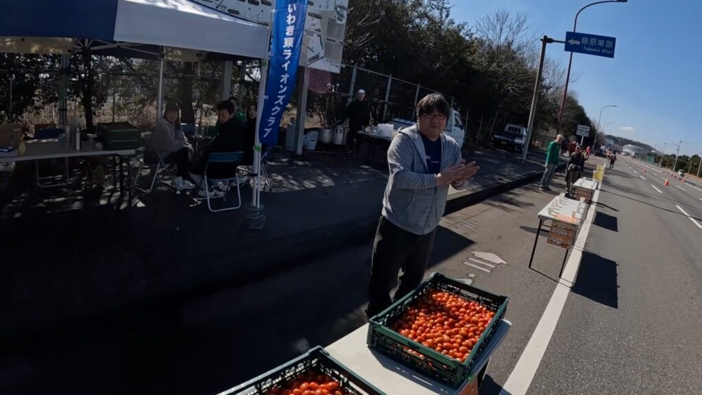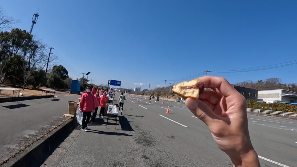 30キロすぎ、私設エイドでしたが、光り輝く赤色に惹かれてミニトマトをいただきました。