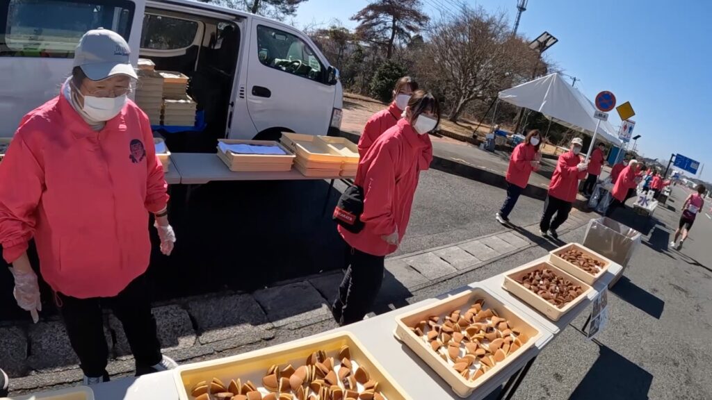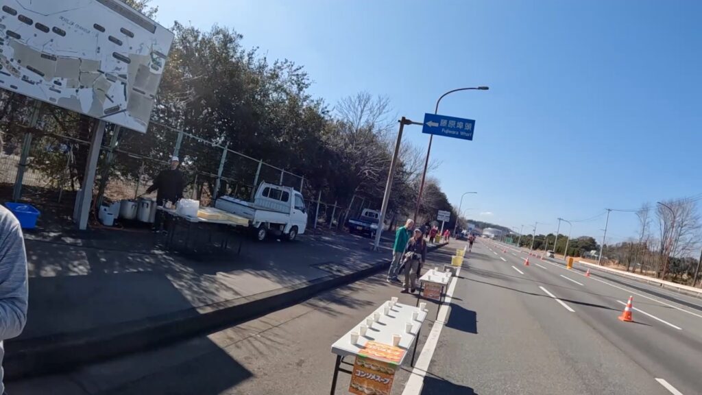中盤余裕のあった速いランナーさんも、給食エイドでのストップ&ゴーに疲れたのか、追いつきましたw