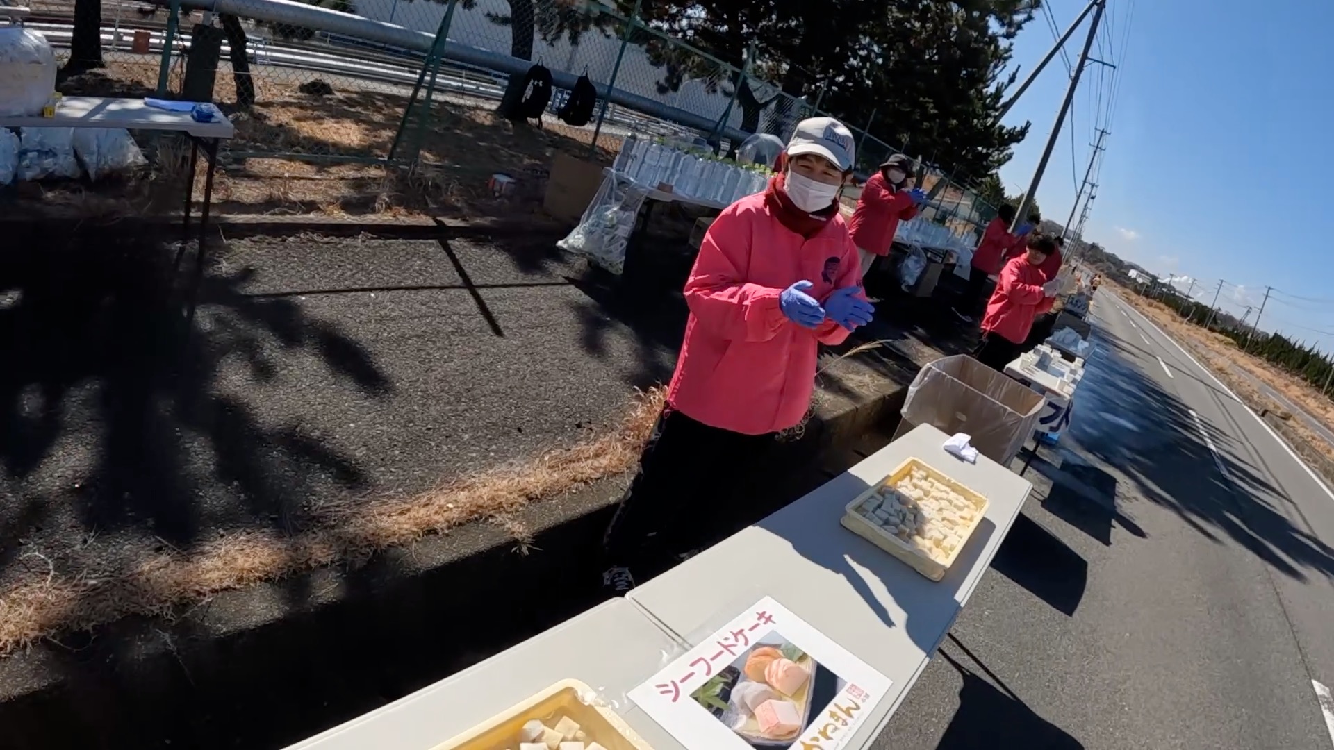 31キロくらいの公式エイドでは、お目当てのシーフードケーキがありました。