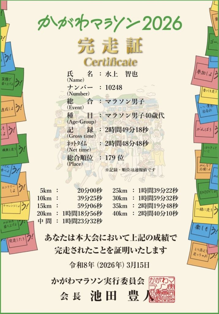 かがわマラソンの結果は・・・
