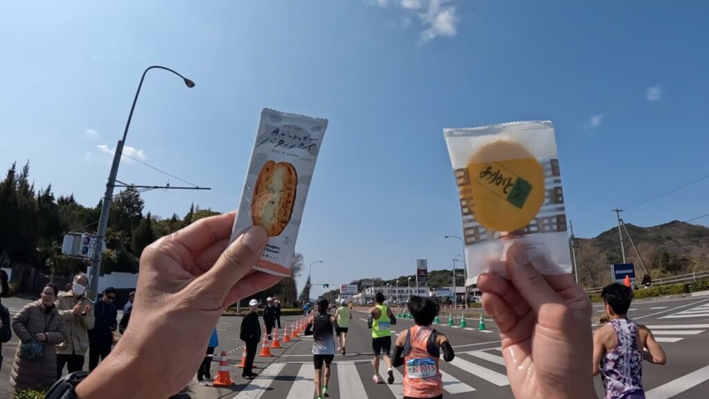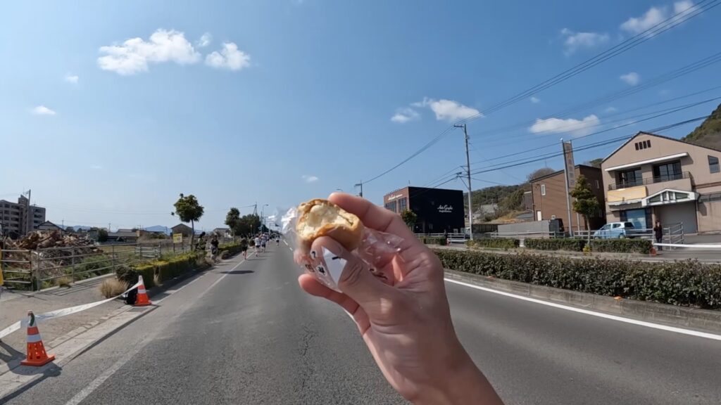 11キロ手前のエイドでは、お待ちかねの給食エイドです。