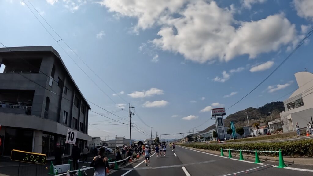 10キロ地点、39分25秒。(5キロラップ、19分25秒)