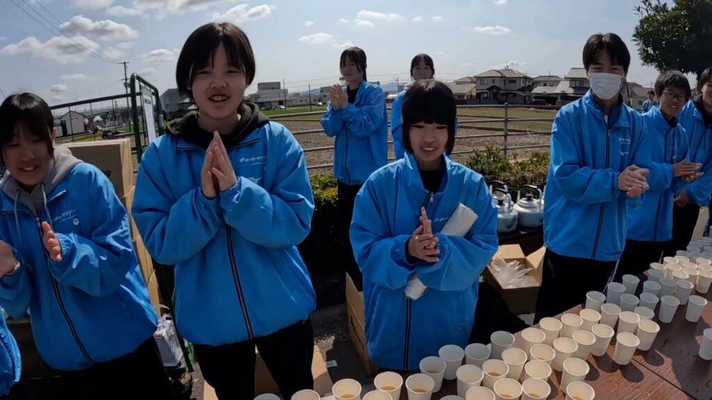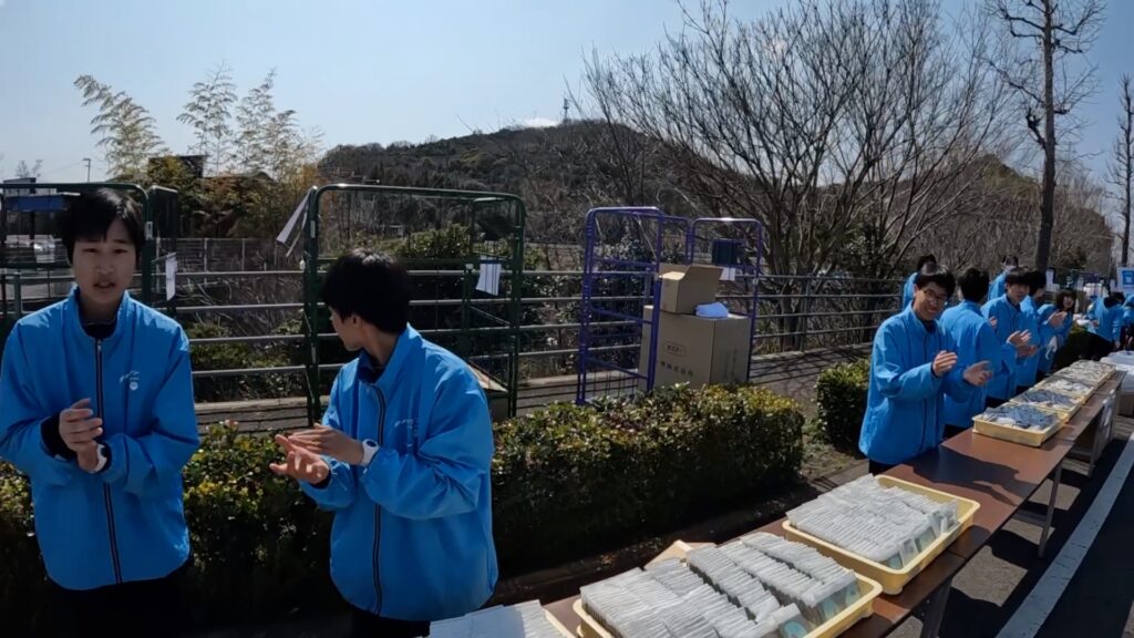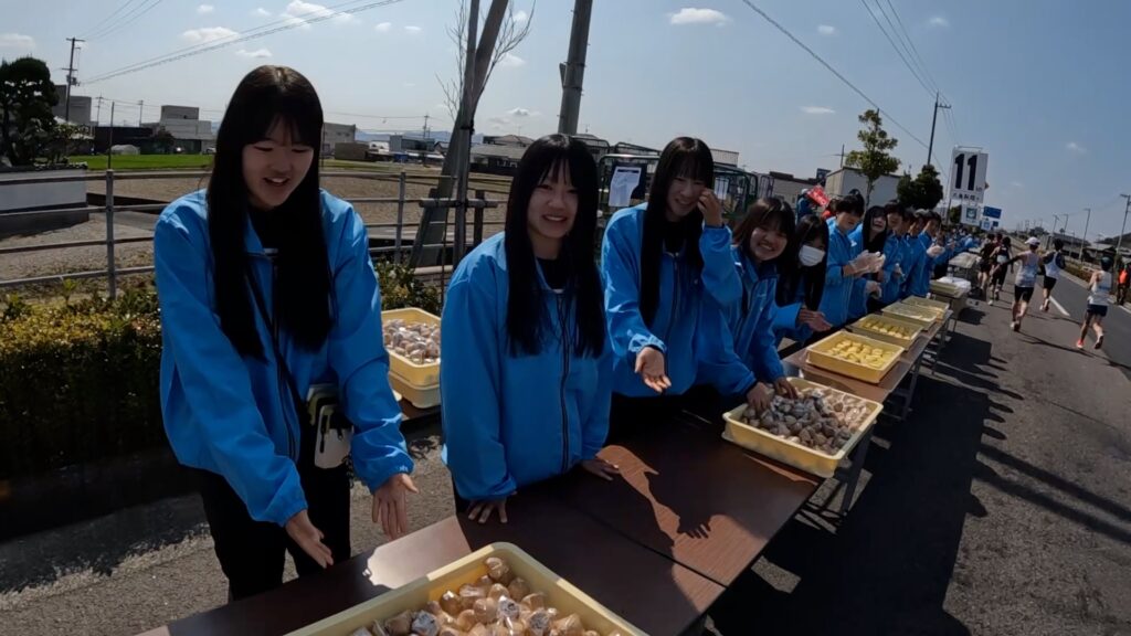 灸まんというお菓子を取ったら、エイドの皆さんが大喜びでした。