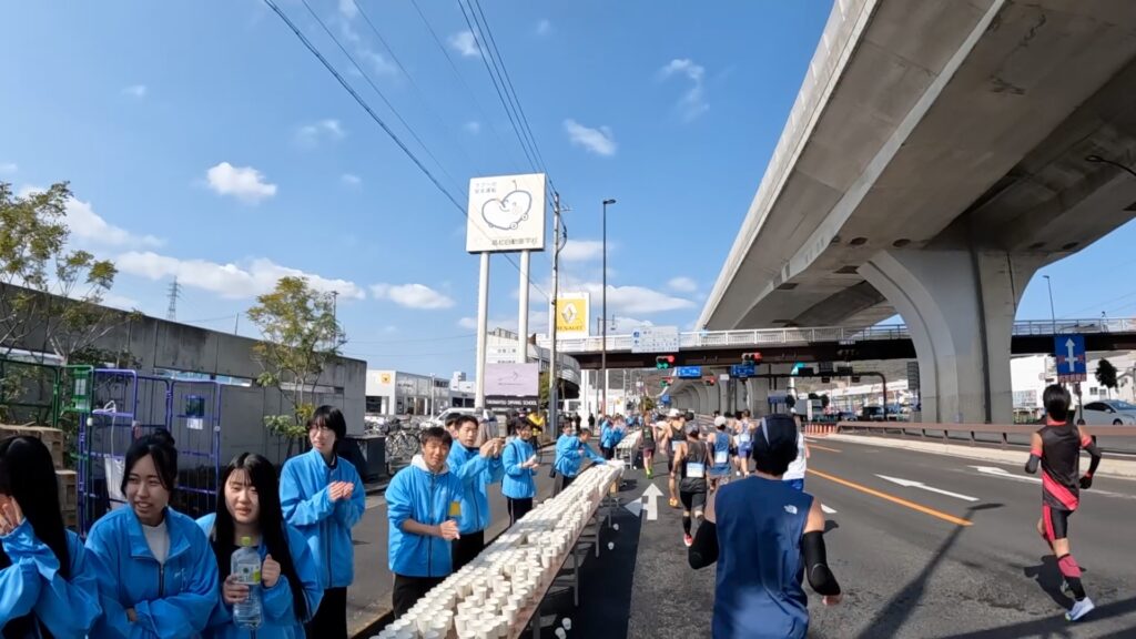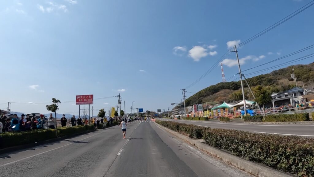 私は、コース撮影のために、しんどくても前にランナーさんがいないレーンを走りますw
