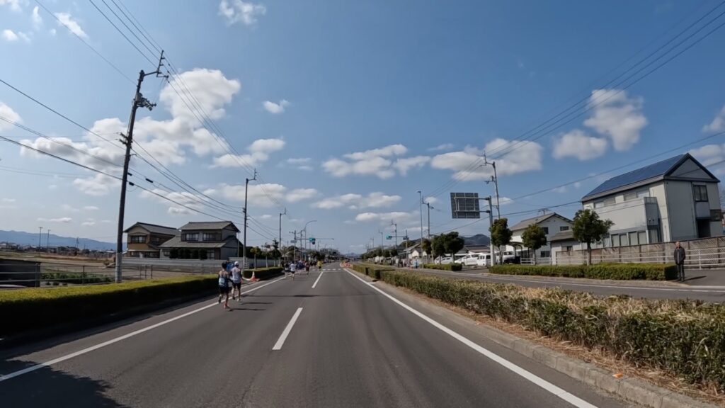 前半はほぼ真っ直ぐの道路を進んで行くので、ひたすら前が見通せます。