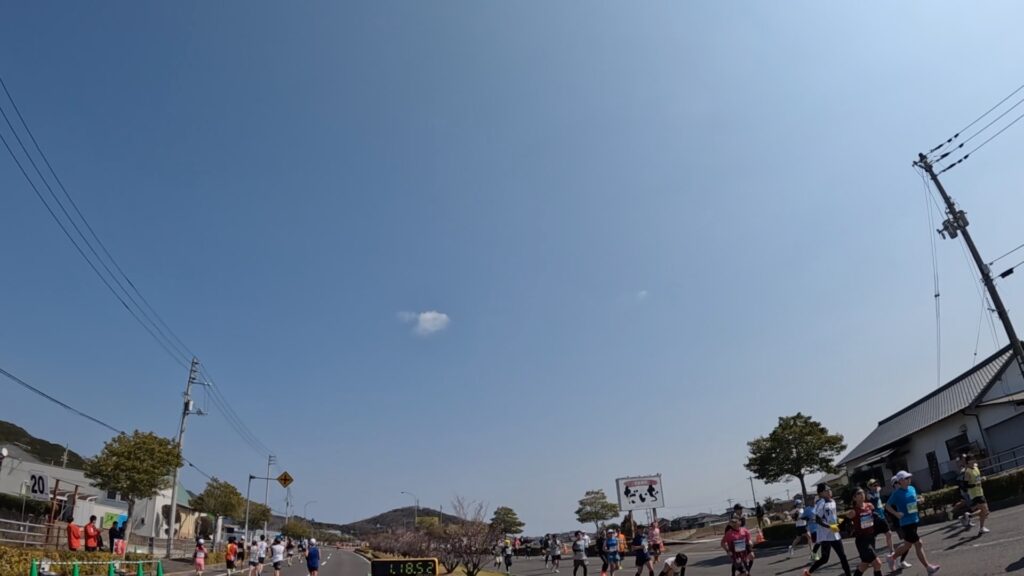 20キロ地点、1時間18分56秒。(5キロラップ、19分50秒)