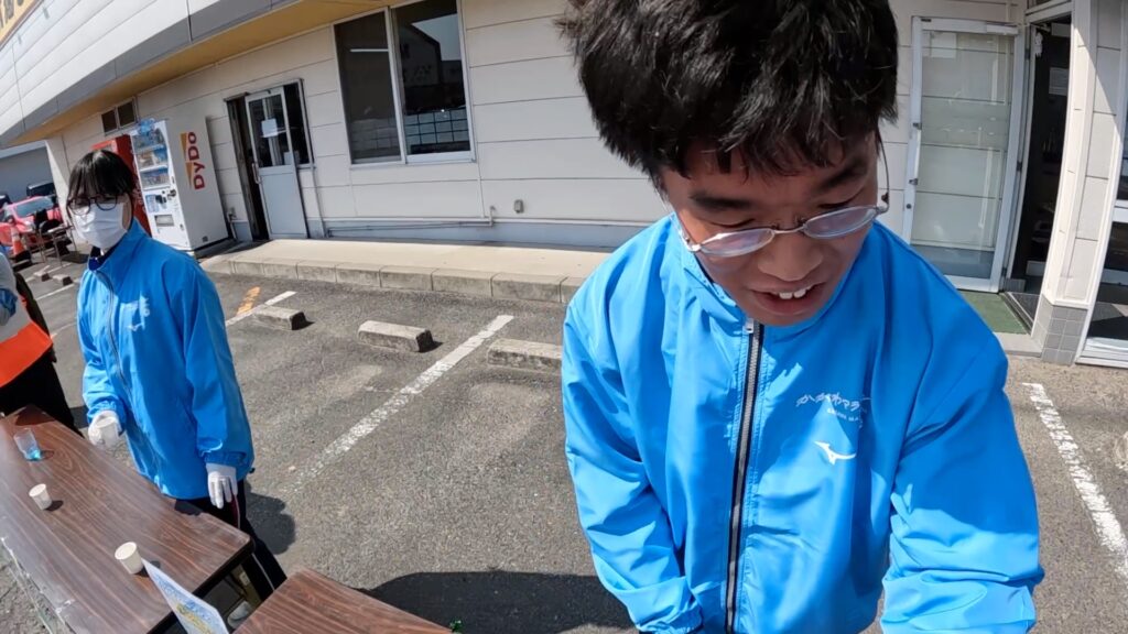 18キロを超えての給食エイドでは、気になる給食があり、ちょっとコースを戻る感じでゲットしにいきました。
