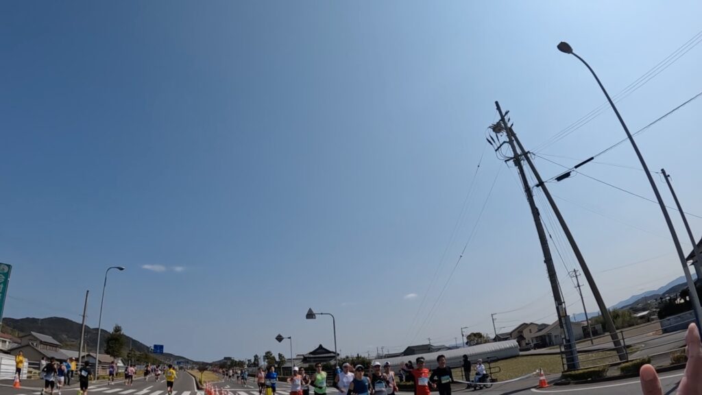 うどんエイドやら、しょうゆ豆やら、GoPro止まったりやらがありましたが、何とかキロ4はキープしました。