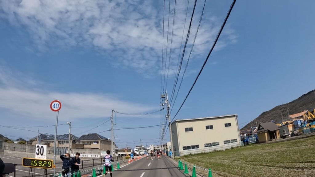 そして、30キロ地点は、1時間59分32秒でした。(5キロラップ、20分10秒)