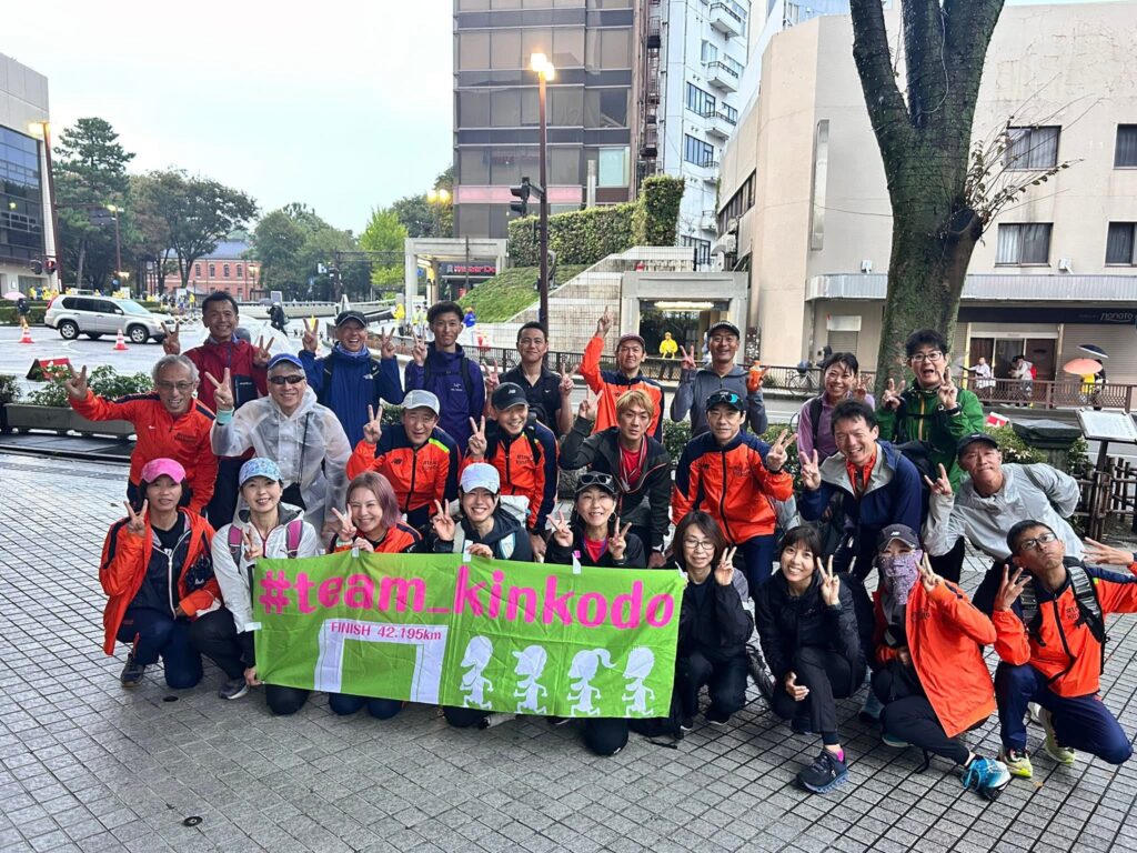 建物の入り口で、チーム金港堂のペースランナーだけで集合写真を撮りました。