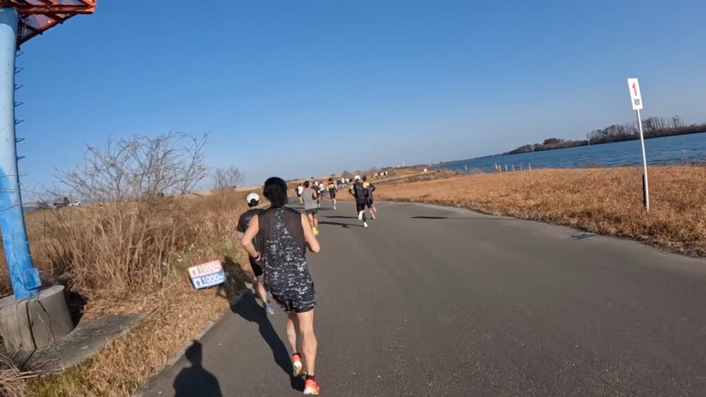 1キロ手前くらいで、ようやく前がひらけてきたので、自分のペースで走り始めます。