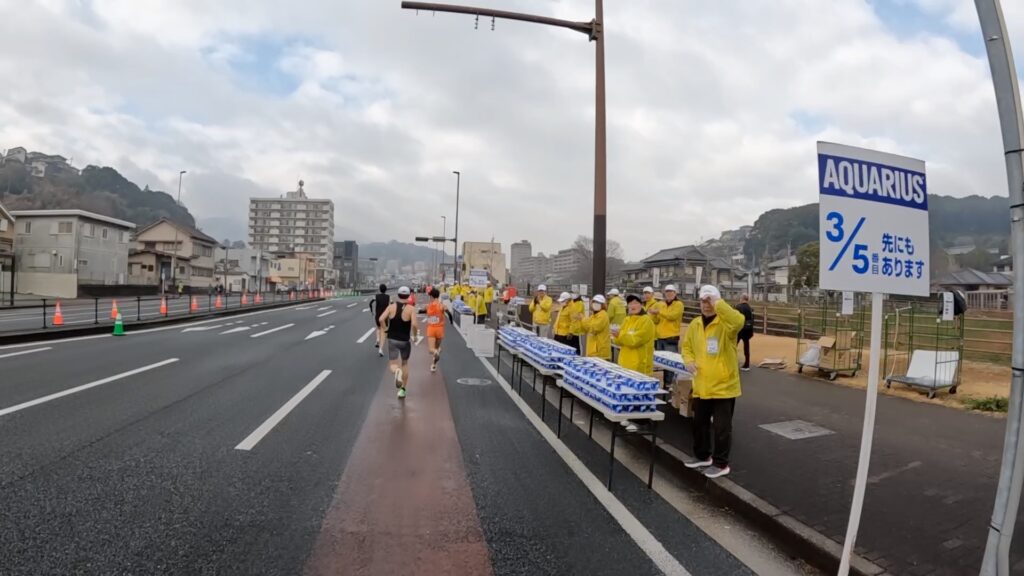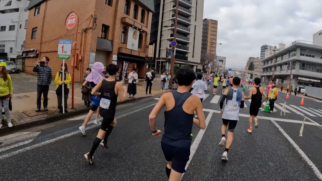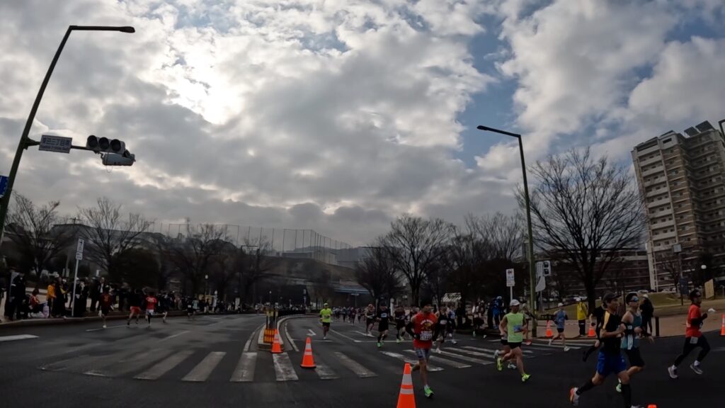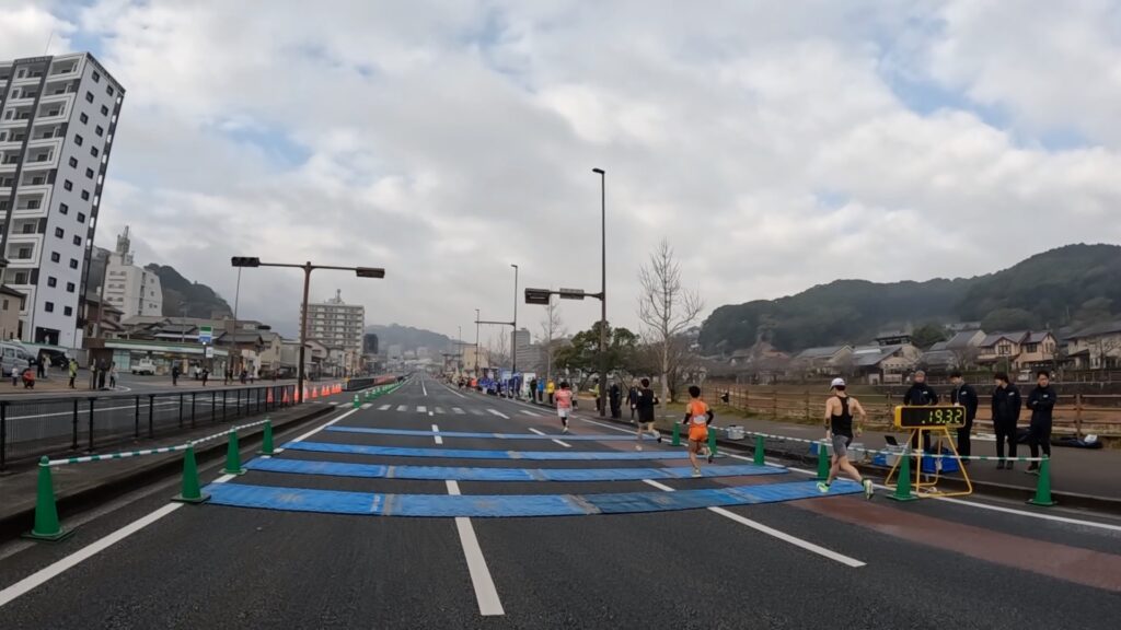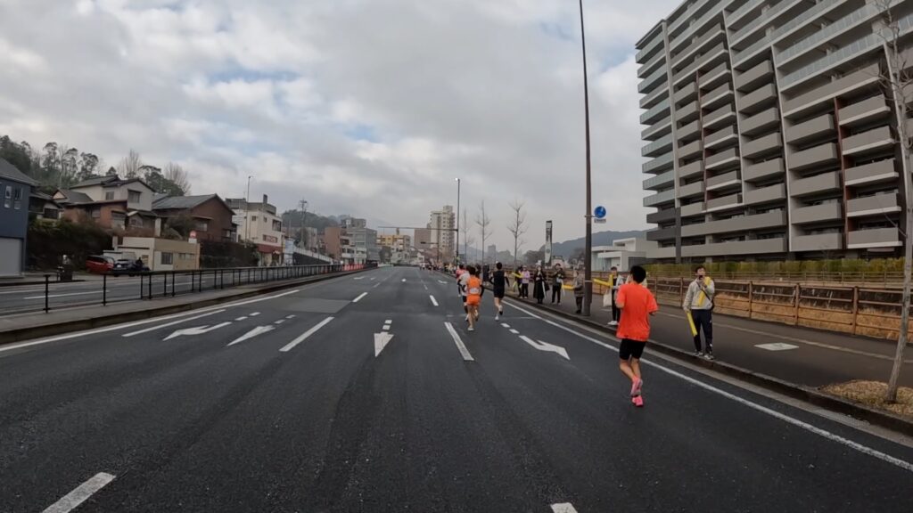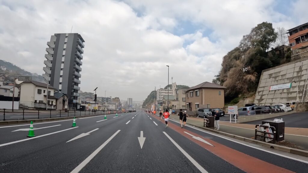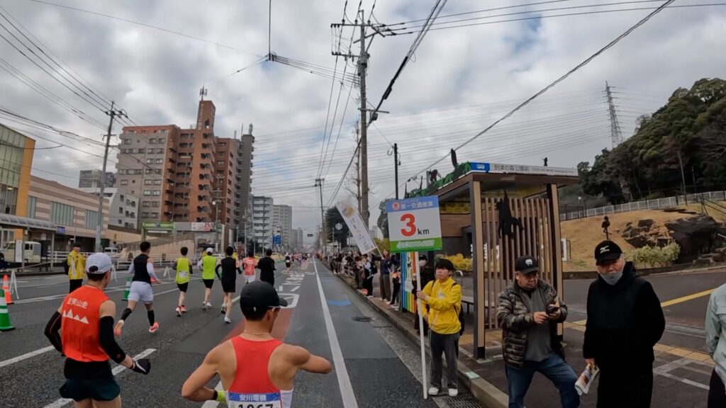 3キロ地点くらいまでは、道路の半分くらいしかコースとなっておらず、混雑があって走りにくいかもしれません。