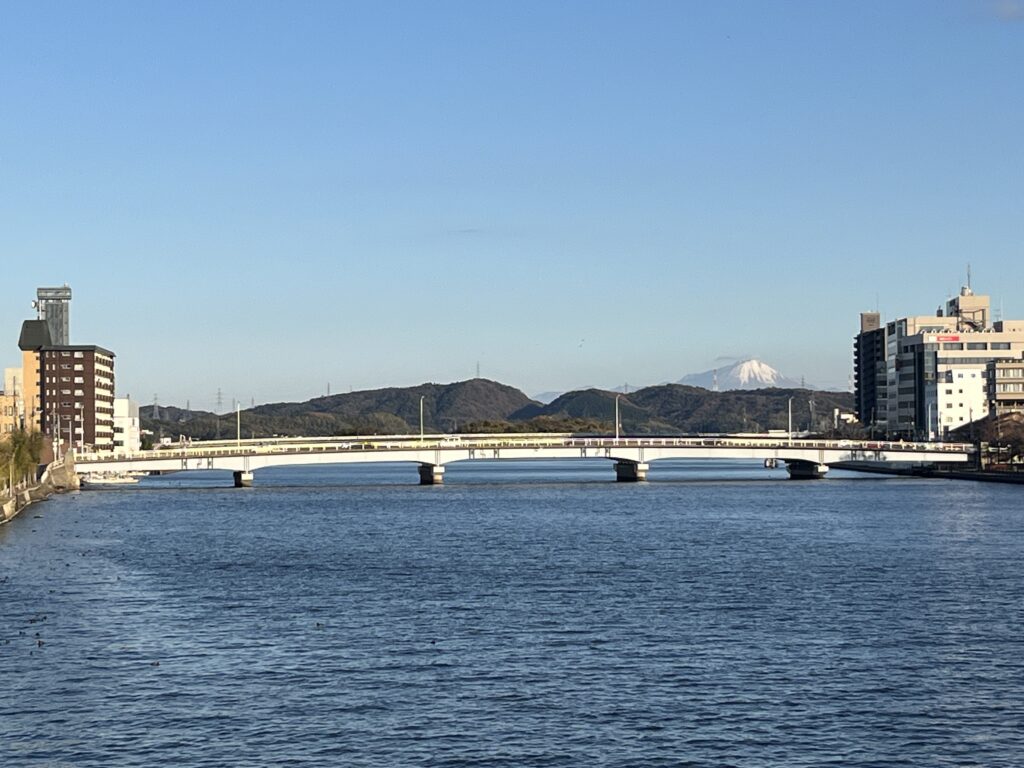宍道湖から続く川越しの大山。