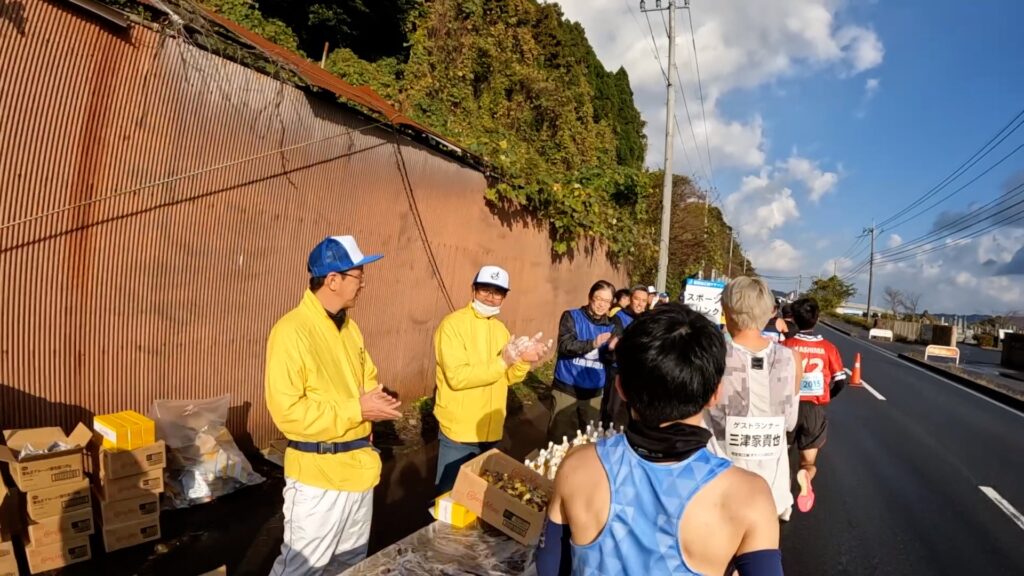ここまでも、応援の方、スライドするランナー、エイドのボランティアさんなど、三津家さんに声をかける方全てに応えてるのを見て、この人はホントに凄いと思いました。