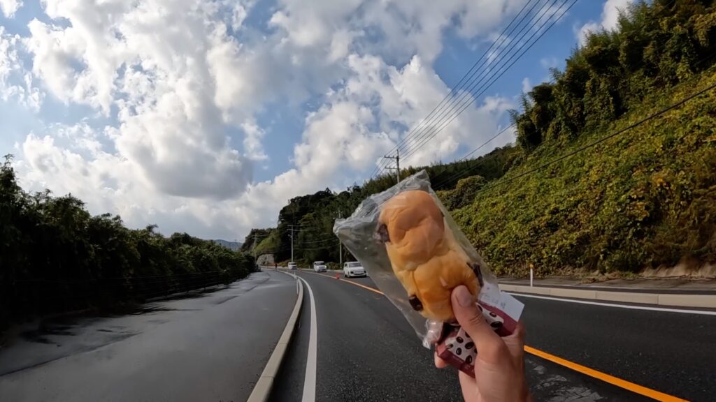 赤てんが食べ終わって、お腹が満たされたので、パンと羊羹を両手に持ったまま走り続けることになりましたw