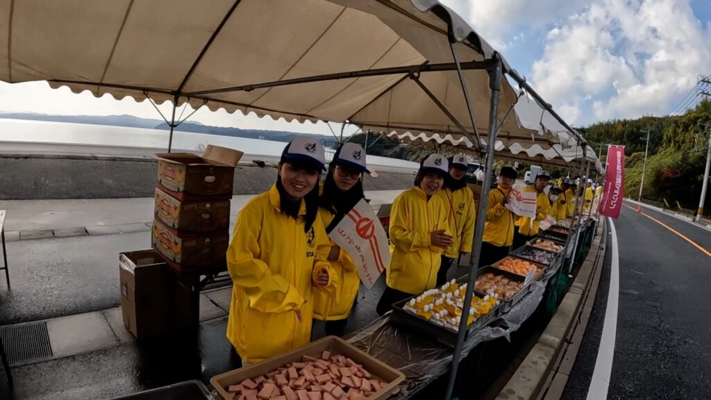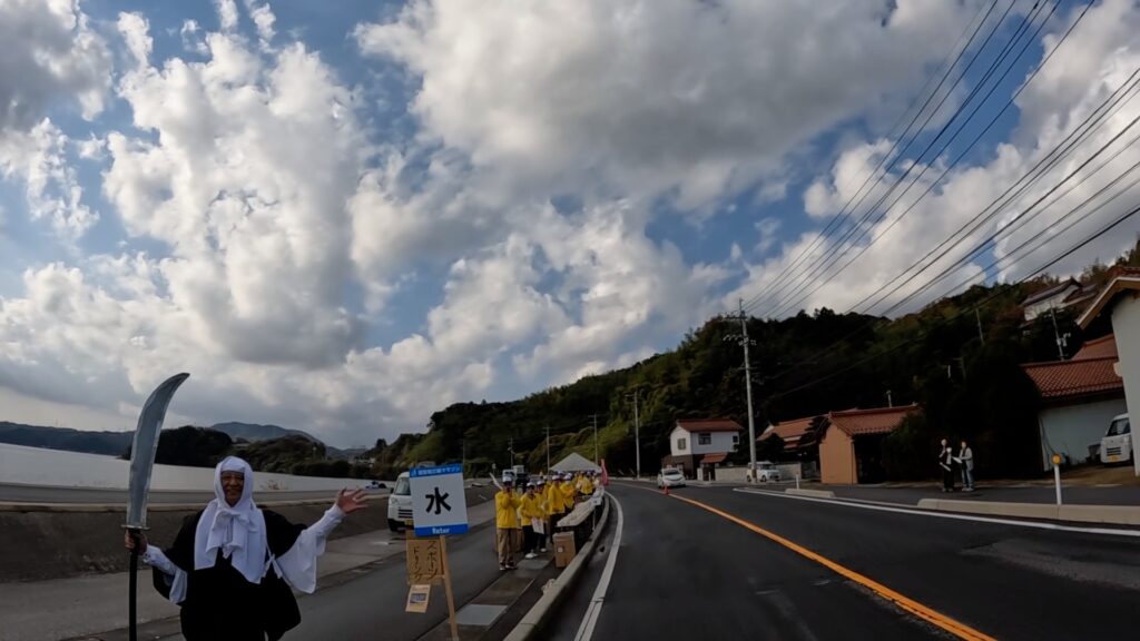 30キロ過ぎのエイドでは、手前に弁慶が応援してくれてました。