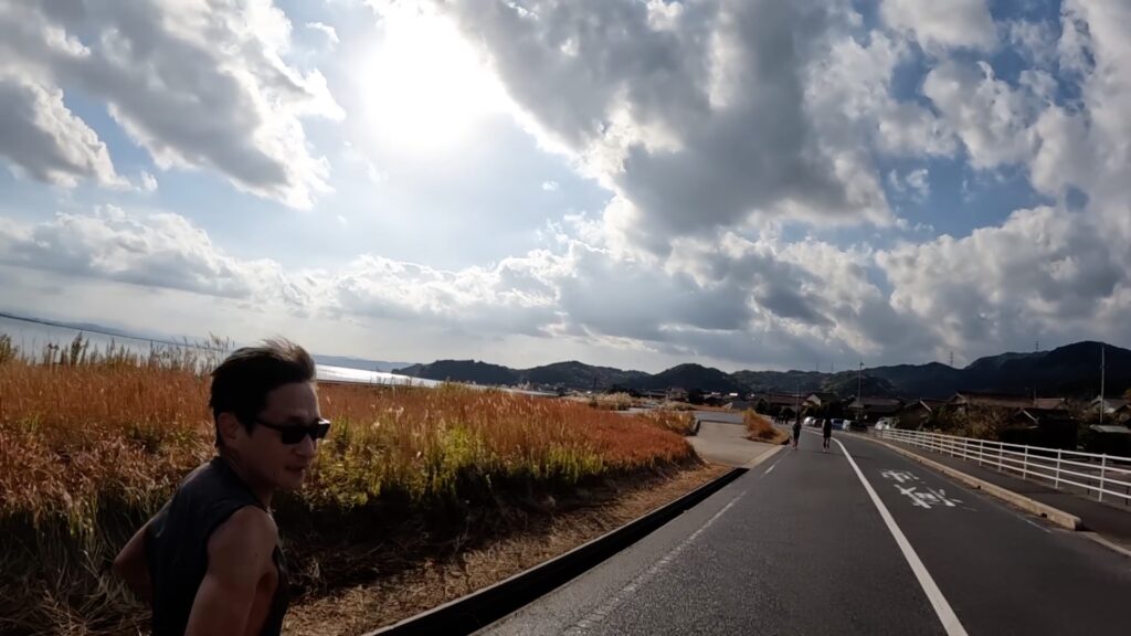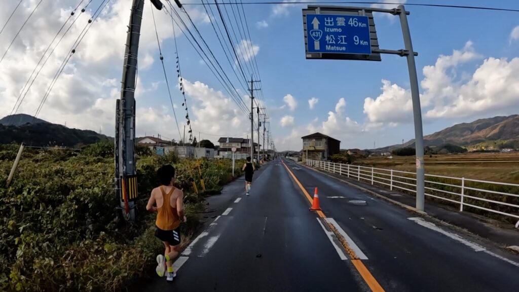 33キロ手前、序盤に言葉を交わしていた、全国制覇繋がりのランナーさんに抜かれました。