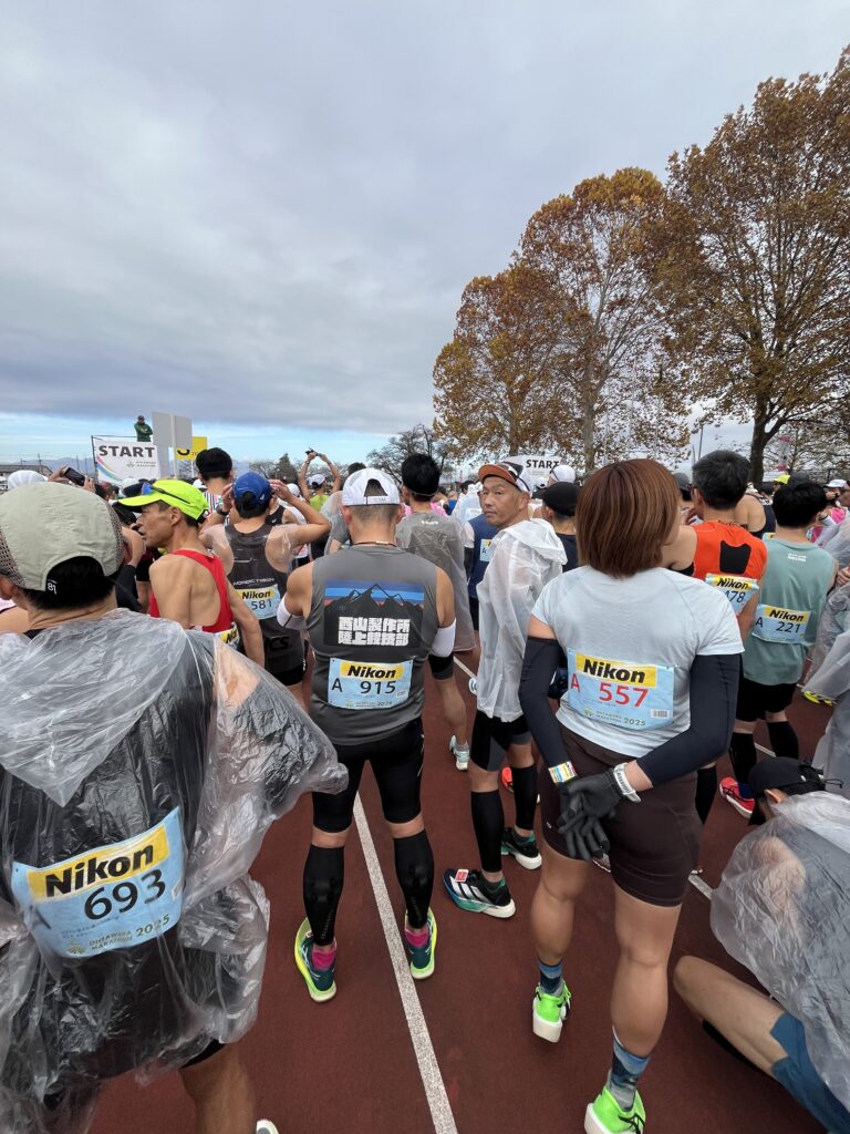 出走準備を終え、スタート20分前にスタートブロック地点に向かいましたが、まだその辺でアップしてるランナーがいたりして、他の大会と違う雰囲気を感じてました。