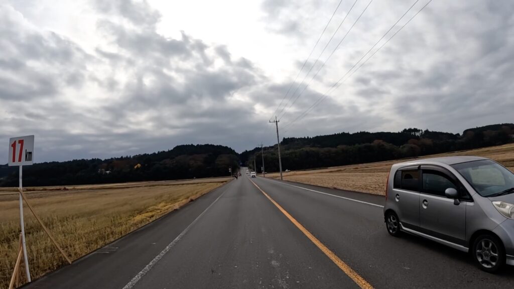 17キロ地点で、道の奥の方に結構な坂が見えてきました。