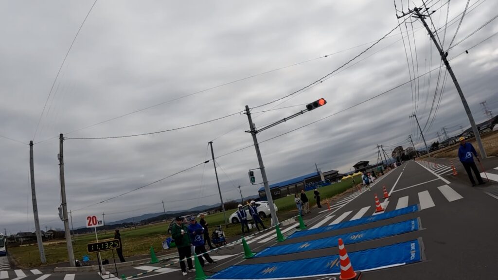 20キロ地点、1時間13分27秒。(5キロラップ、18分20秒)