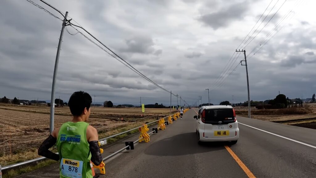 13キロ付近で、報道の車が私たちの集団の前で走り始めました。