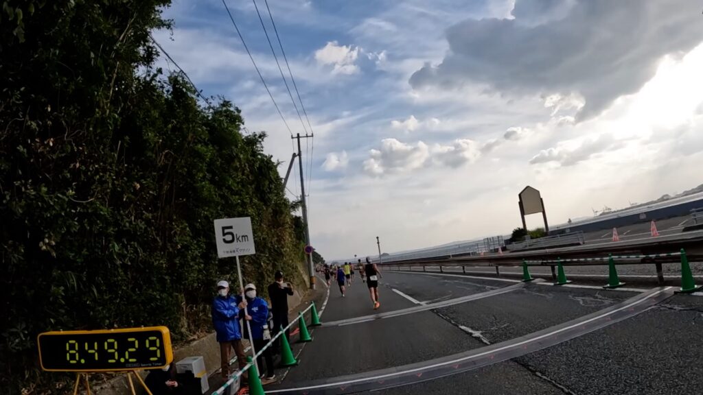 ちなみに、スタートから5キロ地点の折り返しまでは、超絶追い風のため、速くなってしまうのはしょうがないです。