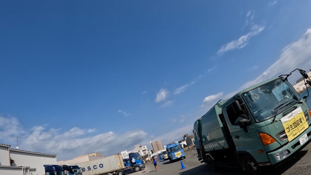ゴールも間近になると、スライドするランナーはいなくなりましたが、スライドするゴミ収集車が現れました。