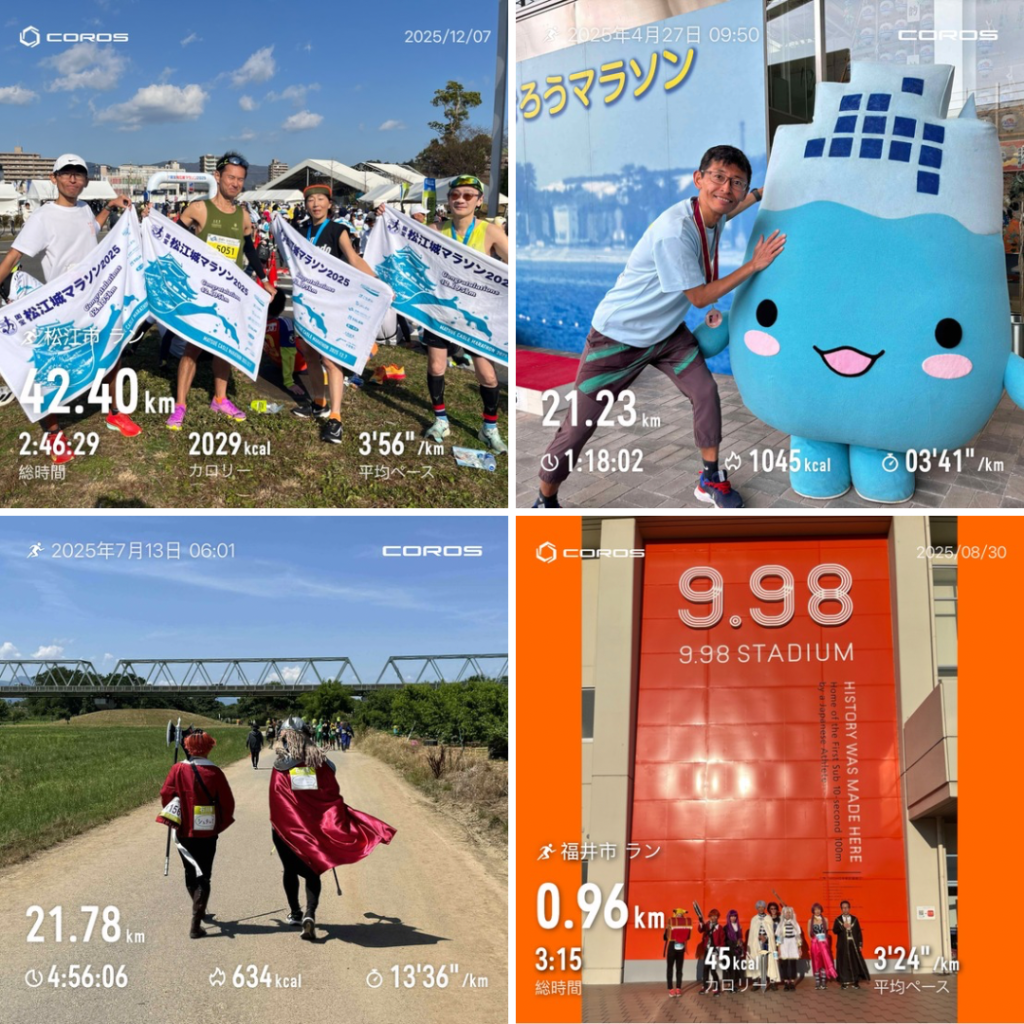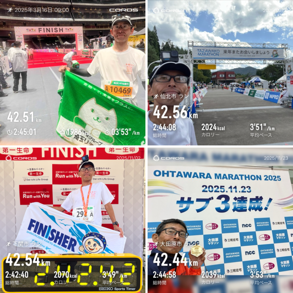 2025年は、フルマラソンの大会に9本出場し、その全てでサブスリーを達成しました。