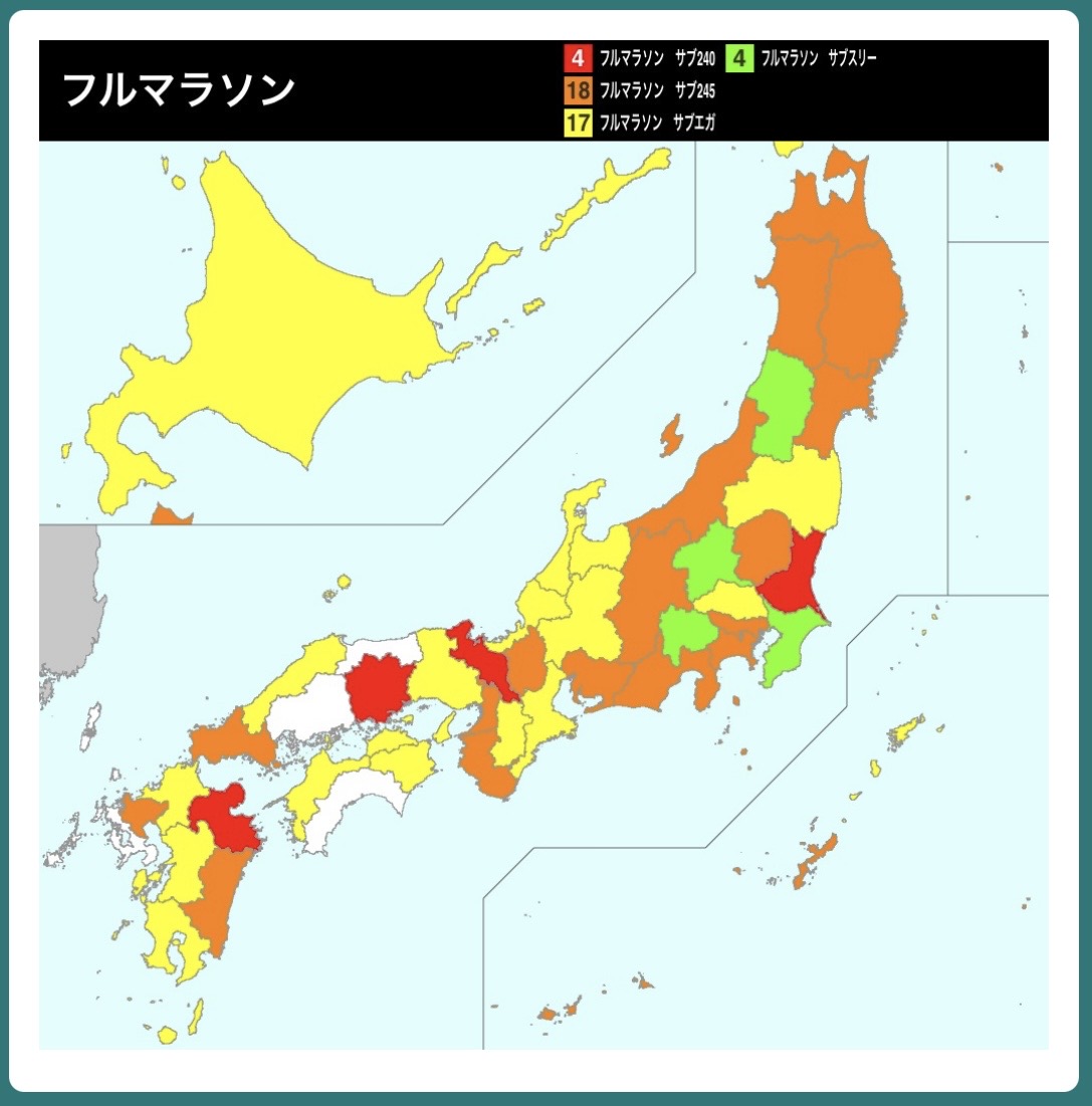 実は、サブスリーで全国制覇を実施している中で、結構な割合でサブエガを達成しています。