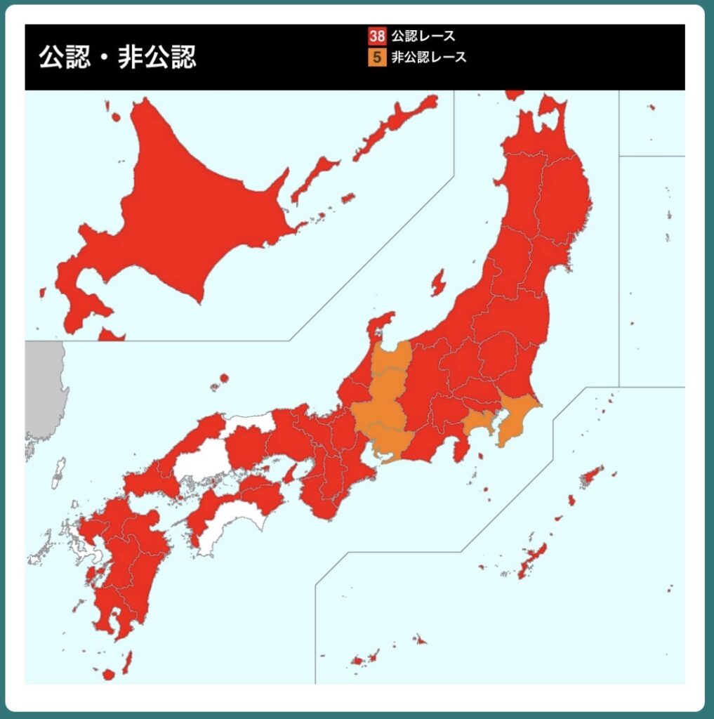現在おこなっている全国制覇では、非公認レースでクリアしている県がいくつかあります。